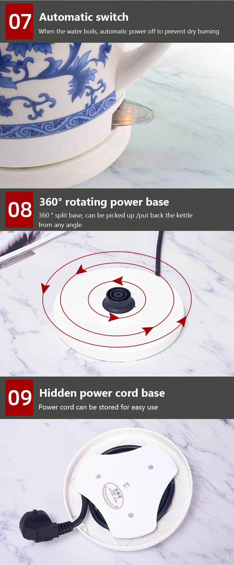 Specification:Voltage: 220VPower: 1000W/1400WCapacity: 1L/1.5LMaterial: Food grade 304 stainless steel + Ceramic![]()